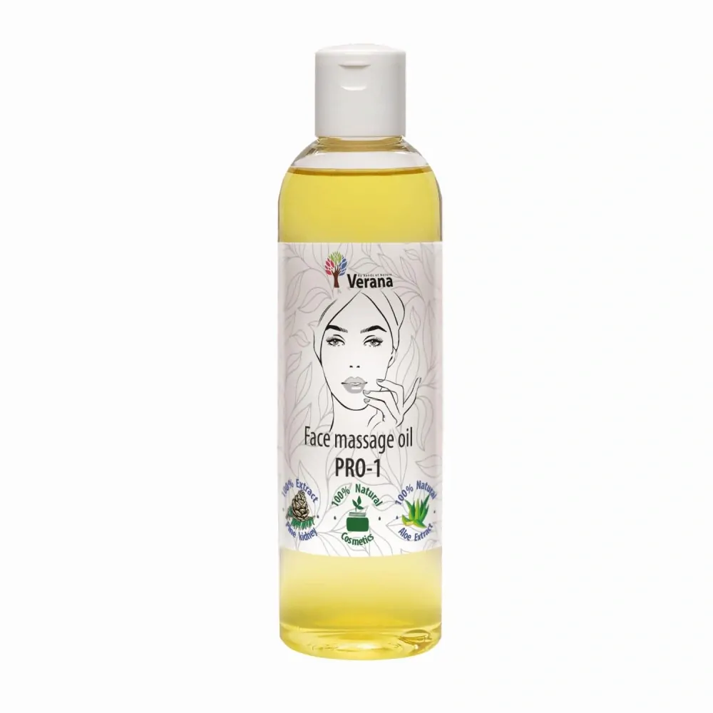 Masážní olej na obličej Verana Professional "PRO-1" je speciálně navržen pro účinnou péči o pleť, různé typy a techniky masáží obličeje a SPA obličejové procedury.