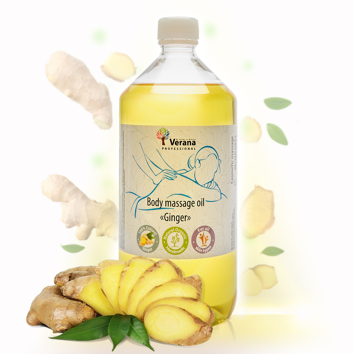 Tělový masážní olej Verana Professional "Zázvor" je speciálně navržen pro všechny druhy regeneračních masáží, aroma masáží a SPA procedur pro tělo. Zvyšuje komfort masážního postupu a pomáhá prodloužit jeho pozitivní účinky.